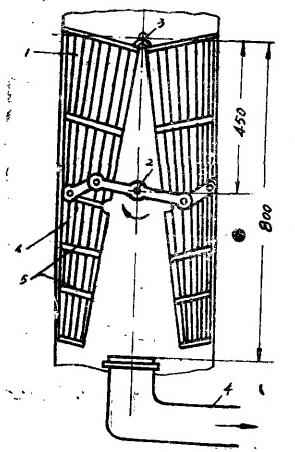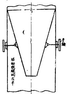 關(guān)于開(kāi)關(guān)膠球清洗裝置也有二種方案,一種是現(xiàn)采用的,優(yōu)點(diǎn)是開(kāi)關(guān)方便一些;缺點(diǎn)是杠桿系統(tǒng)和旋轉(zhuǎn)軸都“貫穿”循環(huán)水管,增大了水阻,即使處于“短路”狀態(tài)此水阻仍去不掉。另一種利用類(lèi)似于潤(rùn)門(mén)開(kāi)關(guān),在收球網(wǎng)之外開(kāi)和關(guān),(圖3乙)它在“短路”狀態(tài)時(shí),開(kāi)啟機(jī)構(gòu)已旋出循環(huán)水管外,可減少短路時(shí)的水阻,當(dāng)然機(jī)構(gòu)稍復(fù)雜一點(diǎn),開(kāi)關(guān)稍費(fèi)事。我們擬在”3機(jī)采用這種機(jī)構(gòu),以和“4機(jī)對(duì)比。