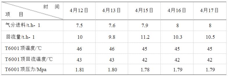 從表2中可以看出:經(jīng)過在線清洗后,分別取15日、16日和17日三天的數(shù)據(jù)看T6001的頂溫及負荷基本保持不變,頂回流溫度明顯降低,使氣分操作彈性增大,為大負荷生產(chǎn)及夏季安全生產(chǎn)提供了有力保證。