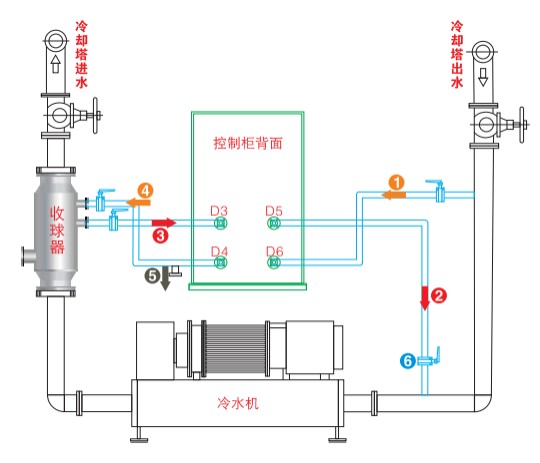 發電廠凝汽器膠球自動清洗裝置系統組成: