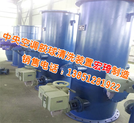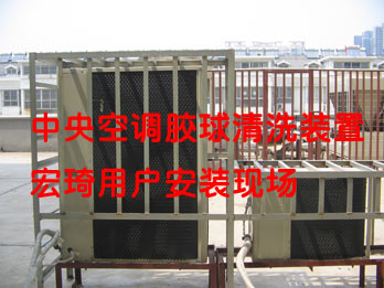 1、全自動在線清洗裝置是提高制冷機組熱效率的重要設(shè)備。主要由收球網(wǎng)、膠球循環(huán)泵、裝球器、程序控制系統(tǒng)、清洗膠球及閥門管路等部件組成。它借助水流的作用將直徑略大于冷凝器冷卻管內(nèi)徑的清潔膠球擠過冷卻管,對冷卻管內(nèi)壁進行反復(fù)擦洗,并把雜質(zhì)帶出,從而提高冷卻管清潔度,避免垢下腐蝕,延長冷卻管使用壽命。該裝置可在機組不停機、不減負荷的條件下使用。