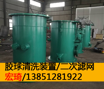 膠球清洗裝置原理是將略大于管子內(nèi)徑的彈性膠球在在循環(huán)水的作用下通過(guò)冷凝器管,膠球前產(chǎn)生噴射水流,同時(shí)膠球摩擦管壁,從而起到清洗污垢的作用。因此,保證系統(tǒng)運(yùn)行可靠、高的收球率、使膠球順利通過(guò)冷凝管并有確實(shí)的擦洗、讓每一根冷凝管有均等的清洗頻率、確保膠球的摩擦不損傷管壁等,成為膠球清洗裝置的技術(shù)關(guān)鍵。先將比重與水相近(0.98-1.02)的膠球加進(jìn)裝球室后,啟動(dòng)膠球泵,膠球在比循環(huán)水壓力略高一點(diǎn)的水流帶動(dòng)下進(jìn)入凝汽器水室進(jìn)口,隨即同循環(huán)水混合并流向水室而進(jìn)入冷凝管,由于膠球輸送管出口朝下,故球分散均勻進(jìn)入凝汽器冷凝管。