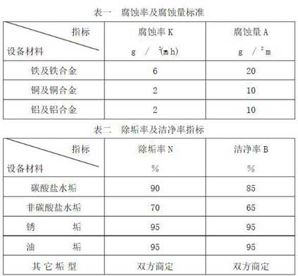 清洗質(zhì)量符合HG/T2387-92《工業(yè)設(shè)備化學(xué)清洗質(zhì)量標(biāo)準(zhǔn)》,即對設(shè)備材料的腐蝕率和腐蝕量其指標(biāo)應(yīng)不大于表一的規(guī)定;設(shè)備除垢率和洗凈率應(yīng)不小于表二的規(guī)定。本次清洗,質(zhì)量優(yōu)于該標(biāo)準(zhǔn)。