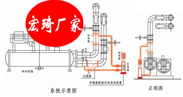 全自動膠球清洗裝置是指在冷水機組不停機的情況下,隨著系統(tǒng)的運行,對換熱器換熱管內(nèi)壁進行清洗。市面上全自動清洗系統(tǒng)主要分為兩種,一種是全自動膠球清洗裝置,另一種是膠球在線清洗系統(tǒng)。