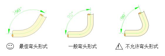 *佳彎頭形式          一般彎頭形式          !  不允許彎頭形式