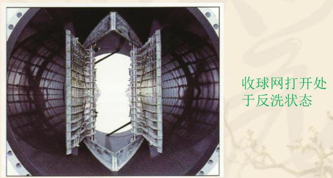 出的夾帶膠球的循環(huán)水經過收球網時,膠球被