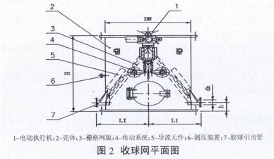 ①采用上部切向進水、下部中心出水結構,在裝球室內形成穩定的下旋渦流,使膠球更易送出。