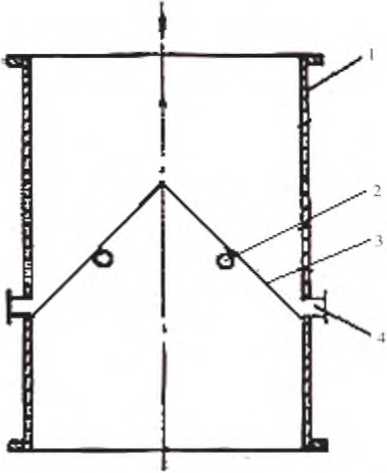 筒壁吻合處間隙大于5mm,這種設(shè)計在運行過程中不僅形成比較大的水阻.而且極易產(chǎn)生渦流,使膠球不能順利進(jìn)入收球口,當(dāng)數(shù)量增多時,容易造成膠球堵塞或漏入循環(huán)水系統(tǒng)中(熱電中心的各循環(huán)冷卻水塔出水口常發(fā)現(xiàn)大量膠球)熱電生產(chǎn)中心曾將2機收球網(wǎng)進(jìn)行過試改造,將收球網(wǎng)改成“V”型,如圖3所示,但改造完成后,膠球清洗裝置投入運行.發(fā)現(xiàn)有大址膠球卡在兩個收球網(wǎng)底部接觸的地方,無法回到收球室,其收球率依然偏低,只有30%左右,改造未達(dá)到預(yù)期目的