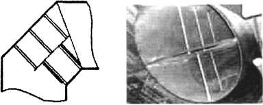 由于現(xiàn)場空間有限,不可能在收球網(wǎng)上方留出相當(dāng)?shù)闹惫芏危虼耍谀鲗缢畯澒芏沃兴胶附右徊讳P鋼折流板,見圖2。該折流板位于彎管段中心線處,將循環(huán)水流一分為二,用以規(guī)整彎管內(nèi)循環(huán)水流,使循環(huán)水能夠均勻地流經(jīng)收球網(wǎng),以利于膠球收集。
