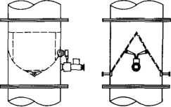 實(shí)際工程中往往因空間有限,收球網(wǎng)板上端即為彎管段,紊亂的流場(chǎng)會(huì)導(dǎo)致出球口處膠球滯留,或膠球吸附在收球網(wǎng)板的局部區(qū)域,從而嚴(yán)重影響膠球循環(huán)。膠球清洗裝置系統(tǒng)在彎管段上游還聯(lián)接蝶閥(見圖2),其對(duì)流場(chǎng)的影響更為惡劣。為改善凝汽器出水彎管段紊流對(duì)膠球清洗系統(tǒng)造成的影響,在以下兩個(gè)方面作了改造: