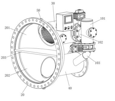 一種端蓋式膠球清洗機(jī)m.genuineness.com.cn,包括封頭管箱、設(shè)置在封頭管箱一端的出水